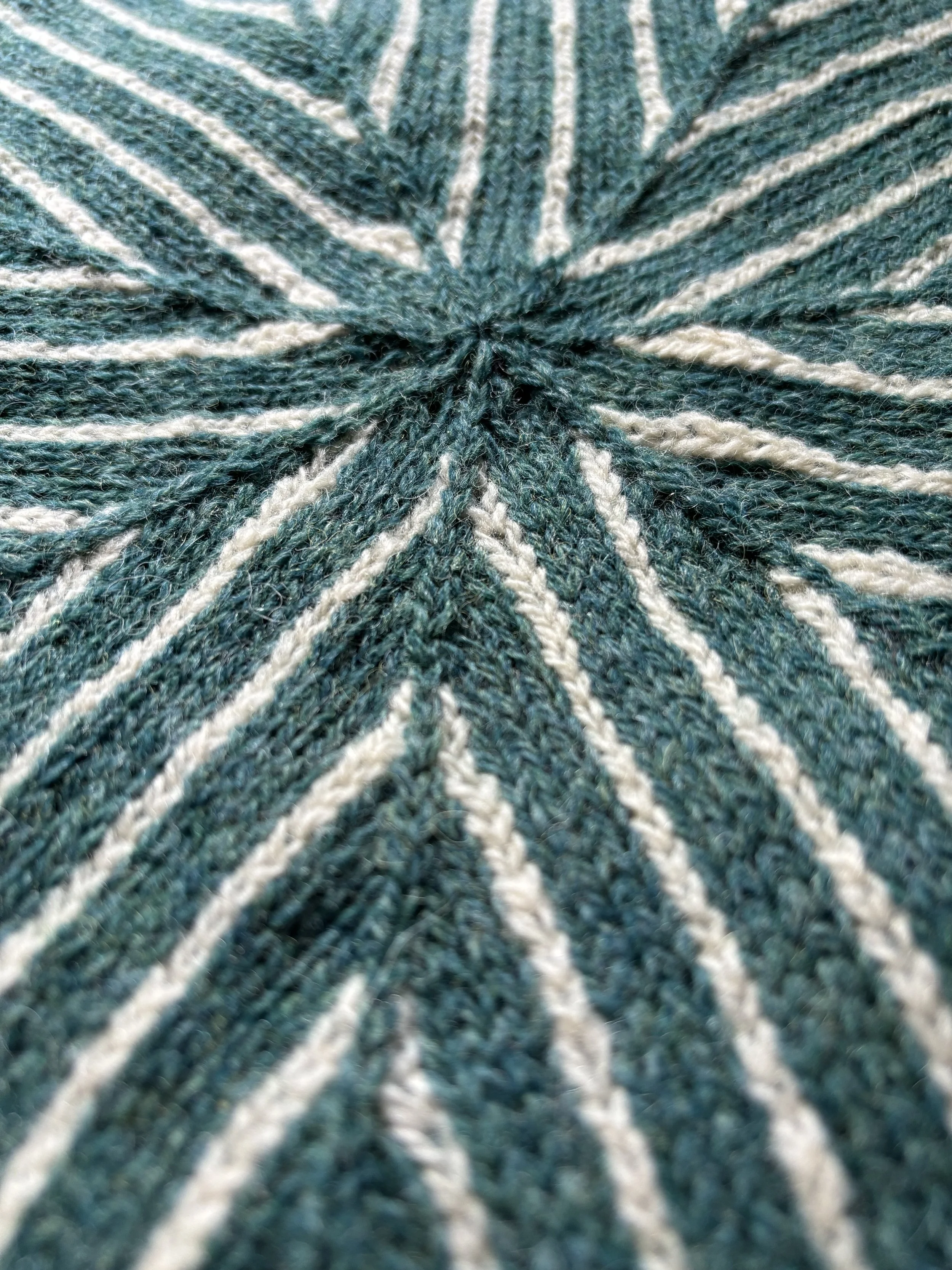 Named after André Le Nôtre, who laid the groundwork for the Champs-Élysées in 1667, the Notre Beret evokes a sense of sophistication associated with one of the most famous streets in Paris. The pinstripe design elevates outfits with simple, Parisian chic aesthetic, while the decreases on the back create a dynamic visual. Crafted from lightweight, 2-ply wool, this beret has a beautiful drape and feel. While the pinstripe design may look complex, the only specialized stitch in this pattern is a central double decrease.